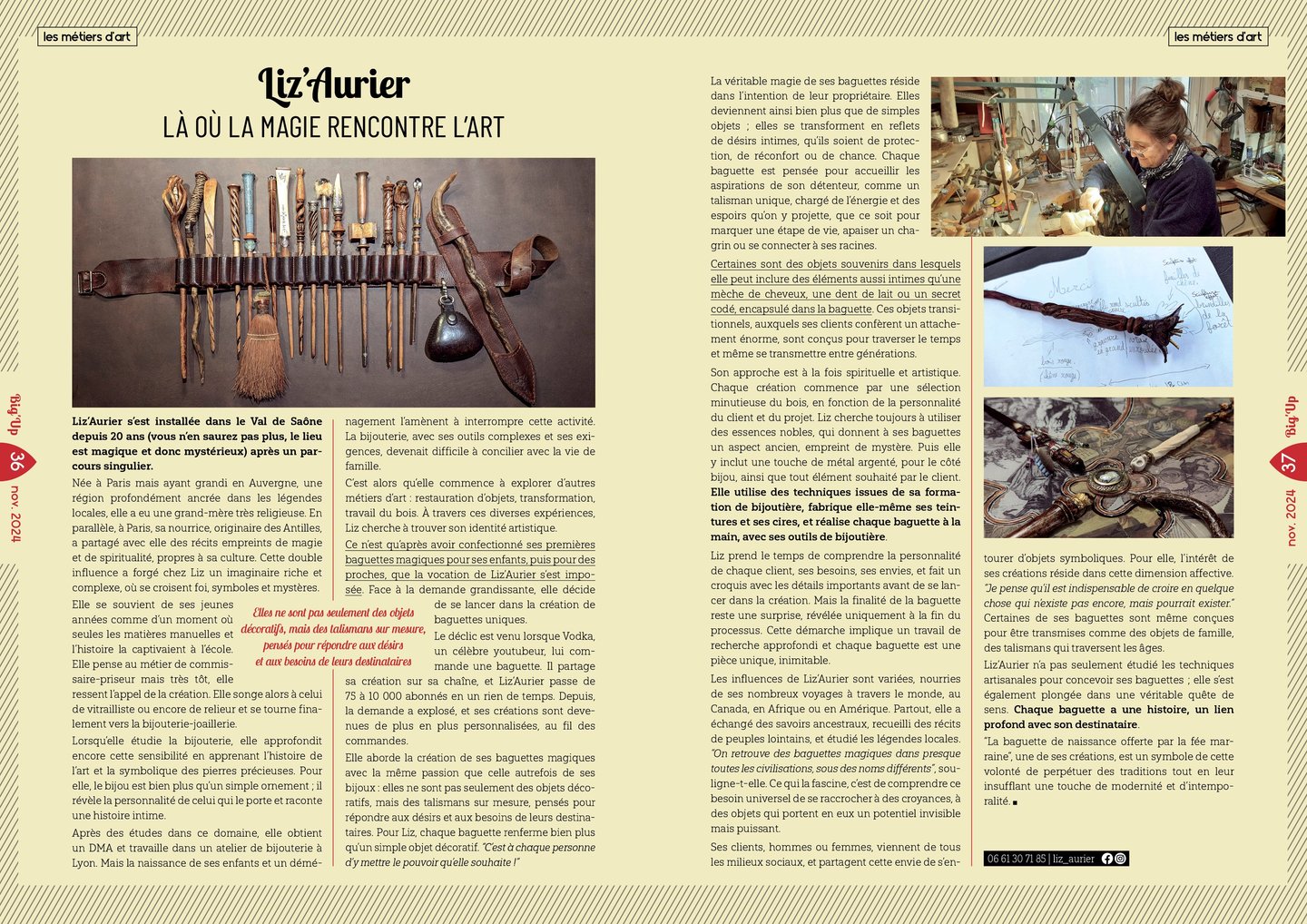 Diplômée des métiers d'art, bijoutier, joaillier ,Liz Aurier met son savoir-faire à l'œuvre pour réinventer l'objet de convoitise des magiciens , fées , druides et sorcières.